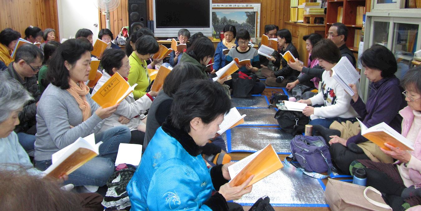 ![]() 图:台北部份法轮功学员在中国新年假期中,连续五天密集学法交流,共勉找回修炼如初的精神。 |