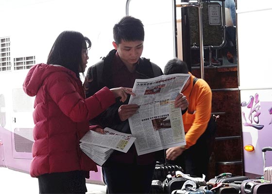 中国大陆民众抵达台湾桃园机场时,不论是白天、黑夜甚至凌晨,都能遇见迎接他们的法轮功学员上前亲切的问候、递上一份真相资料,及“旅途平安”的真诚祝福。