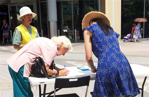 澳洲基督徒琳达(Linda)女士走过法轮功展位时,她问法轮功学员海伦(Helen):“我听说过中共迫害法轮功但不知为何?”海伦为她详细介绍法轮功真相后,还告诉她自己因为坚持信仰法轮功,曾被非法关押期间也被抽血,当作“活摘器官”的活体库备用者之一。
