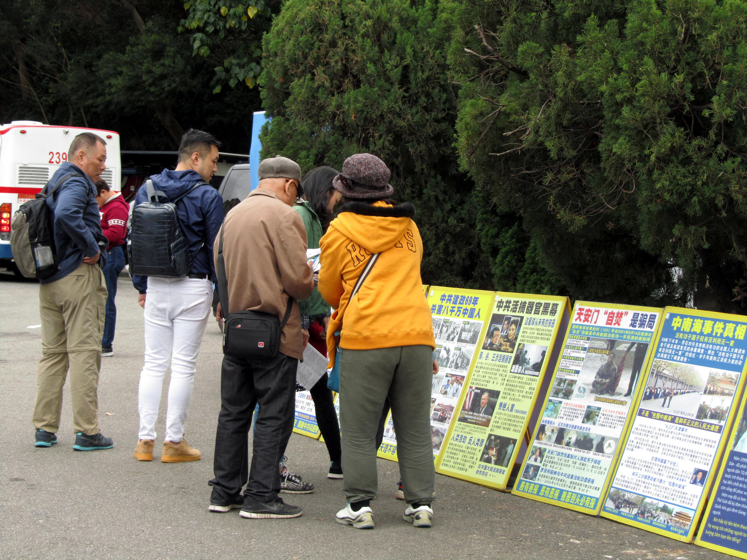 这里是台湾法轮功学员于二零零二年第一个建立的真相点,建点的学员表示,刚开始不太顺利,因为院方不理解,为什么每天都有法轮功学员举着横幅、拿着展板出现在故宫广场,驻警也会阻挡学员。经过努力不懈地讲真相,以及院方对学员的观察,台北故宫高层了解了法轮功学员无私的付出,是为那些因为信仰真善忍,遭受中共残酷迫害、却无法发声的中国百姓。此后,故宫方面给予法轮功学员最大的支持。
