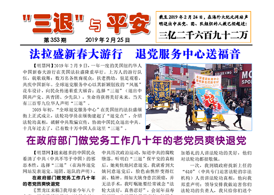 - 真相传单:三退与平安(第353期)- 法拉盛新春大游行 退党服务中心送福音
