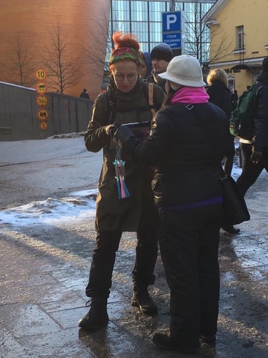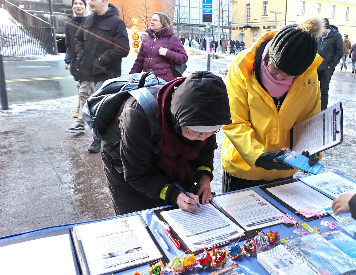 【明慧网二零一九年二月二十七日】芬兰法轮功学员于二零一九年二月二十三日星期六,来到繁华的甘比(Kamppi)中心举办传真相活动。