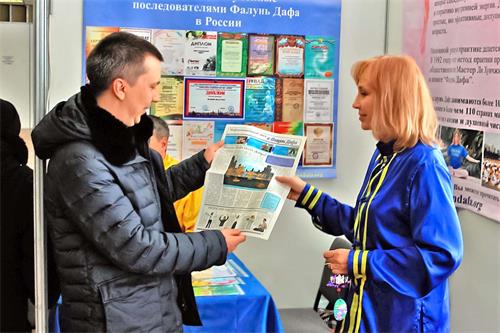 她询问道:“在展览的第一天,我收集了很多信息传单广告,其中包括法轮大法的报纸的。我们非常仔细和详细地阅读完了,并多次阅读。起初,在家与我的丈夫,然后与我们家的朋友一起。我们有几个问题问你,所以特地再一次来到展览会,你能帮我解答一下吗?”
