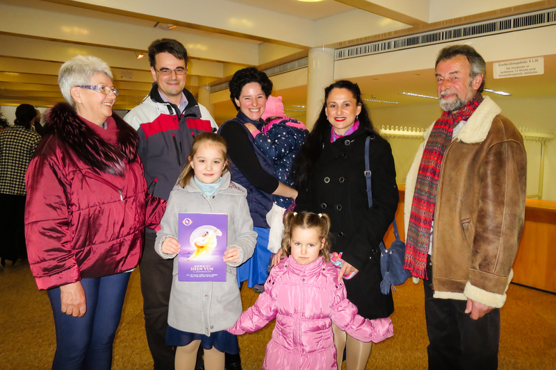 ![]() 二零一九年三月八日下午,芭蕾舞学校校长维多利亚•布察查(Viktoria Bulecza)(右二)偕同一家八口在德国路德维希堡的王宫花园剧院观看了美国神韵国际艺术团的演出。 |
