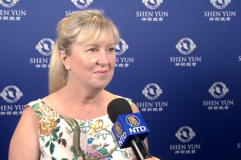 图12:三月十日晚,作曲家、国家广播电台播音员凯莉亚当斯·科利尔(Kylie Adams-Collier)观看演出后表示非常喜欢神韵演出中的传统故事。