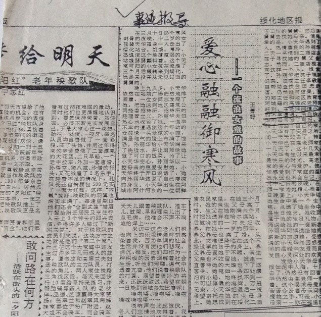 在社会上,高锦淑也经常为人做好事。曾帮助过一个被父母遗弃的十岁左右的小女孩,当时正赶上她的生日,高锦淑就象对待亲生女儿一样给她过生日。前后经过二十多天,先是找到了她在上海的生父母,生父母不管,又辗转找到她的养父母,此事在当时绥化地区报登载过,当时的题目是《爱心融融御寒风》,副标题是:一个流浪女童的故事。