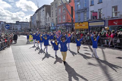二零一九年三月十七日,法轮功学员参加了爱尔兰第二大城市科克市的国庆日游行。由市政府主办的游行由来自社会各阶层和种族的多个团体组成,代表了日渐多元化的爱尔兰社会。当天的游行吸引了来自科克市和周边地区的五万多人前来观看。