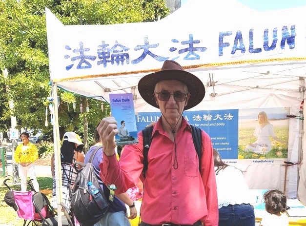 他由衷地表示:“非常非常感谢法轮功学员,他们辛苦付出和每个人交谈,介绍这一普世价值,令人感佩。”