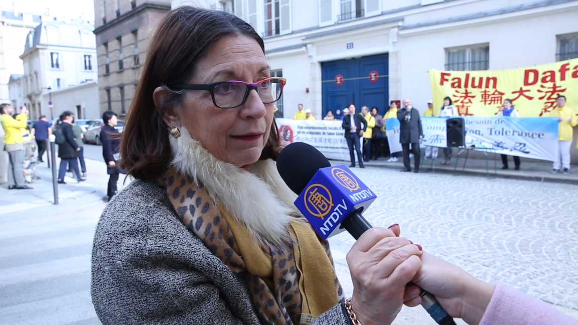 法轮大法学会聘请的律师亚历山大·加布德(Alexandre Gabard)先生在集会上接受新唐人电视台采访时说:“法国法律非常有力的保护了言论自由,集会游行自由,包括此次活动。”