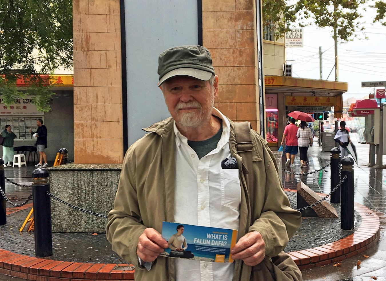 ![]() 图4:澳洲退休教师菲利普·皮尔格里姆(Philip Pilgrim)希望传播法轮功真相,帮助尽快制止邪恶。 |