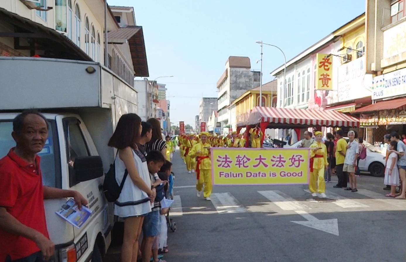 二零一九年二月十日,大年初六上午九时,马来西亚法轮功学员在霹雳州首府怡保(Ipoh)这美丽的城市,举行己亥年第一场的新年游行。气势磅礴的天国乐团演奏,还有深具中华传统特色的腰鼓表演、仙女队、舞龙队、灯笼队、还有祥和庄严的功法演示,壮观的阵容,吸引了沿途民众驻足观看。
