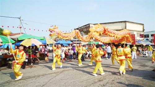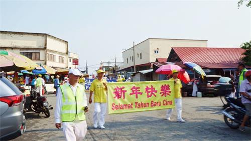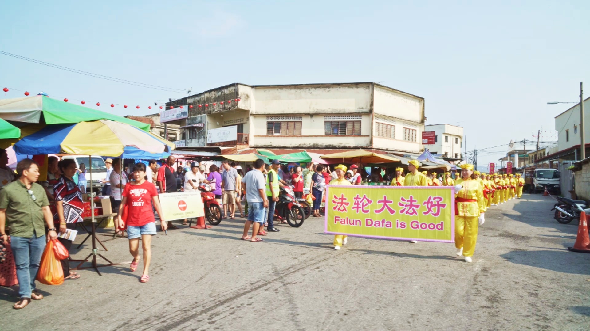 二零一九年二月十日,大年初六下午四点半,法轮功学员在霹雳州华人聚集的拱桥新村(Kanthan Baru)举行新年游行,把佳节欢乐气氛带给了当地民众。