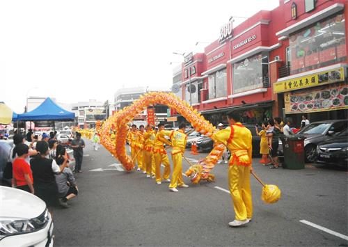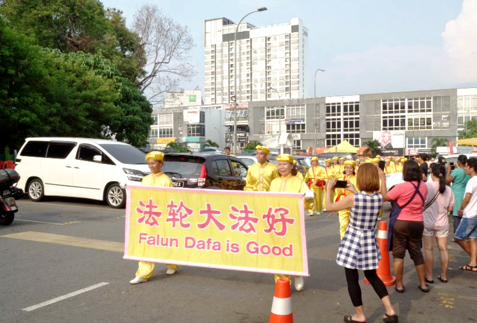 二零一九年二月十七日,大年十三,法轮功学员陆续来到雪兰莪州蕉赖十一哩(Batu 11, Cheras)、蕉赖鸿贸商城(Cheras Traders Square),这两个城镇举行第三和第四场的游行,向当地民众送上新年祝福。阵容壮观的法轮功游行队伍,无论是气势磅礴的天国乐团演奏,或是深具中华传统特色的腰鼓表演、舞龙队、仙女队、还是祥和的功法演示,都给当地民众带来深刻印象。