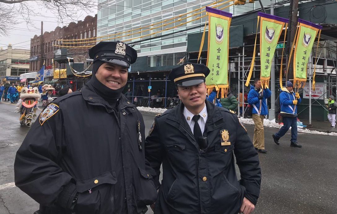 游行大道上每个街口都有警察维持秩序,警察局长站在游行队伍前留影,并说,法轮功的游行队伍文明有秩序,“他们(法轮功)在传播好的信息,看来今天我们的工作很有意义。”
