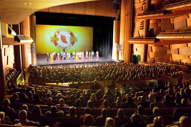 ![]() 图3:二零一九年三月一日至三日晚,神韵纽约艺术团在亚利桑那州梅沙艺术中心池田剧院(Ikeda Theater)三天的四场演出,门票在一个月前全部售罄。图为三月一日晚演出大爆满的盛况。 |
