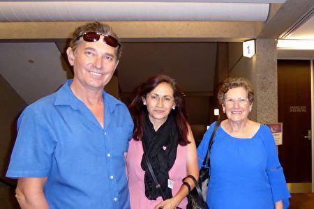 ![]() 图9:沙纳·葛雷斯戈(Shane Gresiger)携妻子密达(Mirdha)(中)和母亲帕梅拉·葛雷斯戈(Pamela Gresiger)(右)观看了神韵艺术团在布里斯本的二月二十七日下午的演出。 |