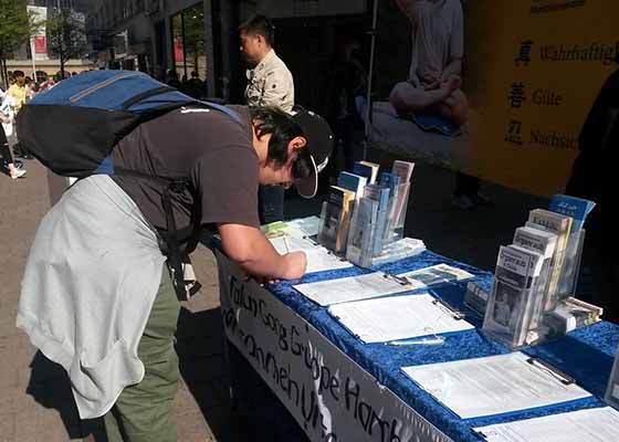 瑞典游客支持法轮功 谴中共迫害