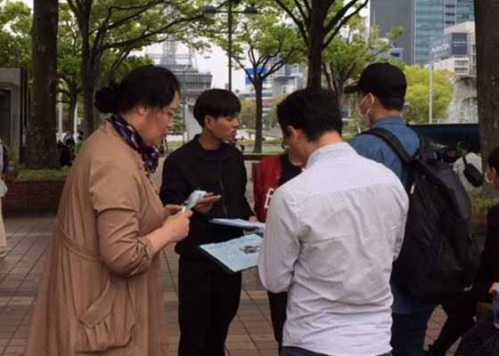 4月21日,日本法轮功学员在名古屋市最繁华热闹的地段举办活动,纪念四·二五和平上访20周年,向人们介绍法轮功及在中国遭受的迫害。