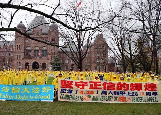 四月二十日,多伦多法轮功学员在加拿大安省议会大厦前的皇后公园集会举行“四·二五”二十周年的纪念活动,举行了一系列的活动。