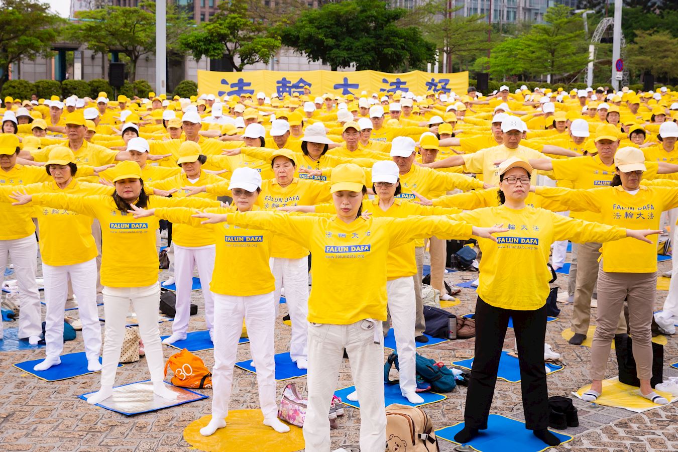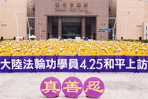 ![]() 图1~4:逾千名法轮功学员于台北市民广场集会炼功,纪念“四·二五”上访二十周年。 |