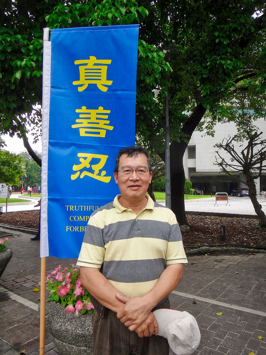 板桥的吴光辉先生,在朋友推荐了十年,他才开始修炼法轮功,至今已八年。他表示,“修炼后,在思想上是突飞猛进。也因为学法,才知道社会就像一个大染缸,人人在其中被污染着;学法后才知道大染缸是同流合污,跳脱出来回头一看,才知道常人合法的事情,修炼人往往会用更高的理来对待。”