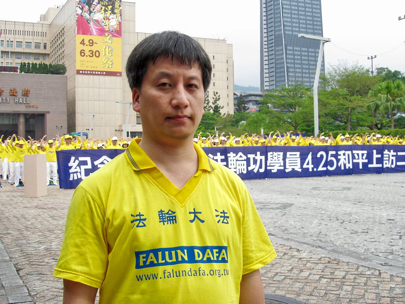 台北市议会议员助理王牧民,在集会现场一旁专注的照相。受访时表示,谈到对法轮功的认识,“是一种修炼团体,纯粹希望生活走向更正向的一个团体,但是因为中共不喜欢人民聚集在一起,以至于法轮功遭受很严重的迫害,甚至还被活摘器官的问题。”他进一步补充,“因为修炼法轮功,会让身体更健康,所以,成为中共摘取健康的最佳对像。”