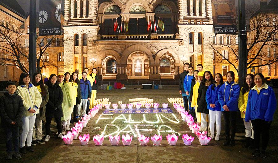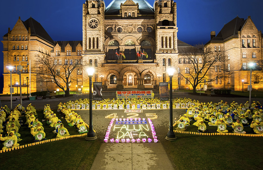![]() 图1:二零一九年四月二十日晚上八点至十点,多伦多法轮功学员在安省议会大楼前举行烛光夜悼念,悼念被中共迫害致死的法轮功学员。 |