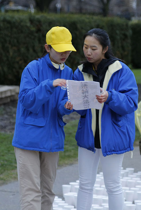 小孙是麦克马斯特大学(McMaster University)三年级学生,从出生就开始修炼。他说:“四月二十五日是个特殊的日子,我很荣幸能参加这个庄严的悼念活动,摆放蜡烛的任务让我觉得我们正在尽职尽责地表达我们的敬意。尽管夜晚漆黑,但烛光给整个集会带来了光明与希望,带来了集会应有的庄严与神圣。我个人为我们所做的工作感到自豪。青年组的每个人团结互助,配合融洽。”
