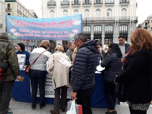 【明慧网二零一九年四月二十三日】为纪念法轮功学员“四·二五”和平上访二十周年,西班牙法轮功学员在首都马德里举行系列活动,谴责中共二十年来对修炼真善忍的法轮功学员的残酷迫害,让更多民众和游客了解法轮功及在中国所遭受的迫害,要求中共立即停止对法轮功的迫害,法办迫害元凶江泽民。