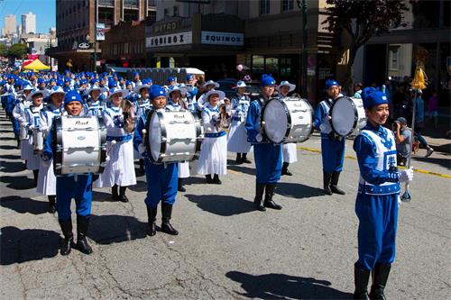 下午两点,游行在旧金山联合街(Union Street)和高夫街(Gough Street)拉开序幕。在灿烂的阳光下,观众观赏了花车及乐队参加的游行。法轮功天国乐团赢得了主办方和观众们的一致赞誉。