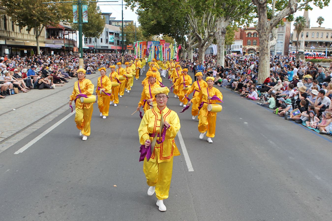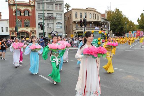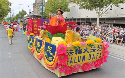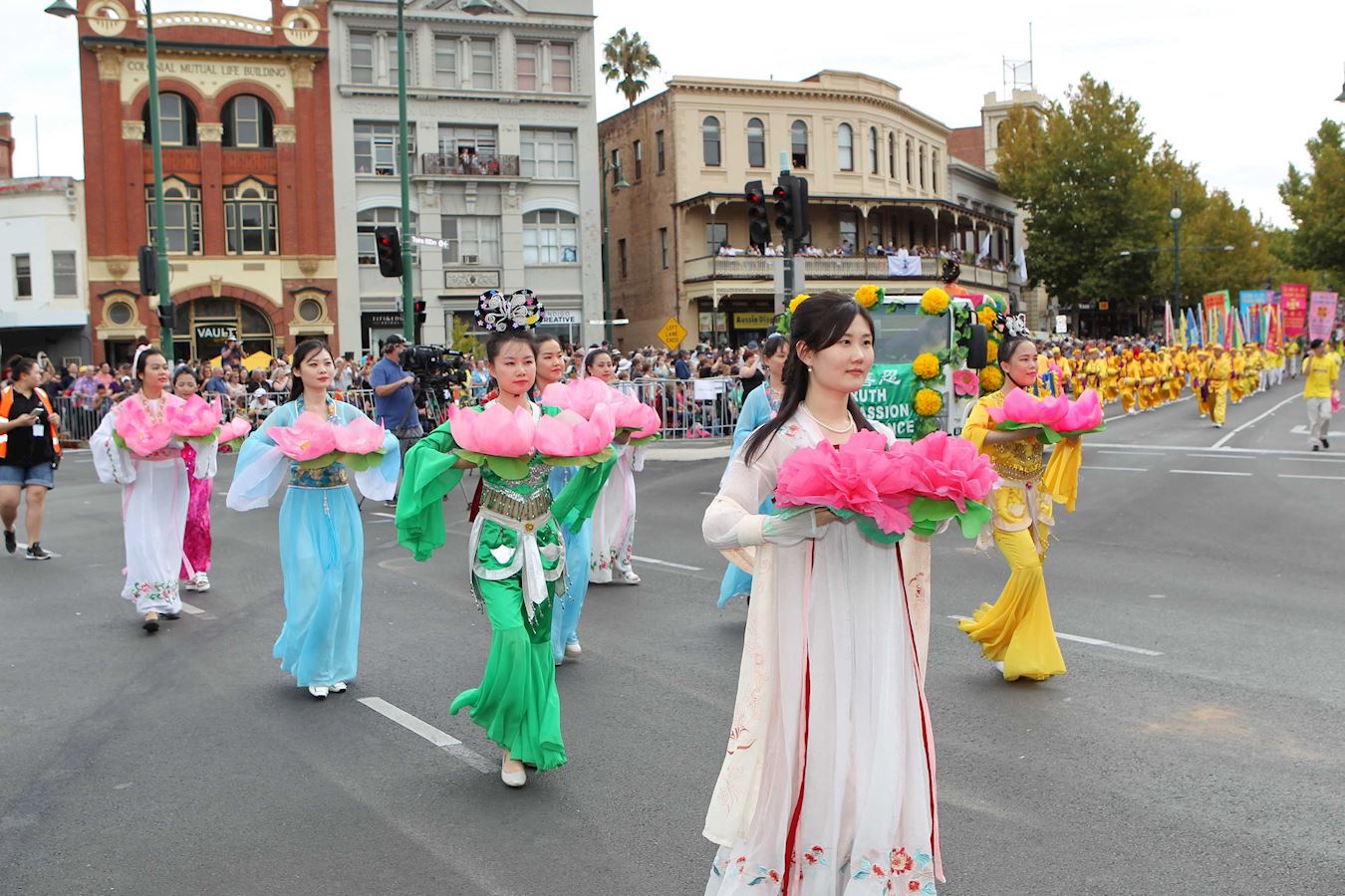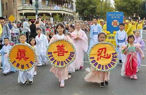 ![]() 图1~5:二零一九年四月二十一日,法轮功学员的队伍在澳洲淘金重镇本迪戈(Bendigo)举办的复活节盛装大游行(Easter Gala Parade)中,展现“真、善、忍”的美好。 |