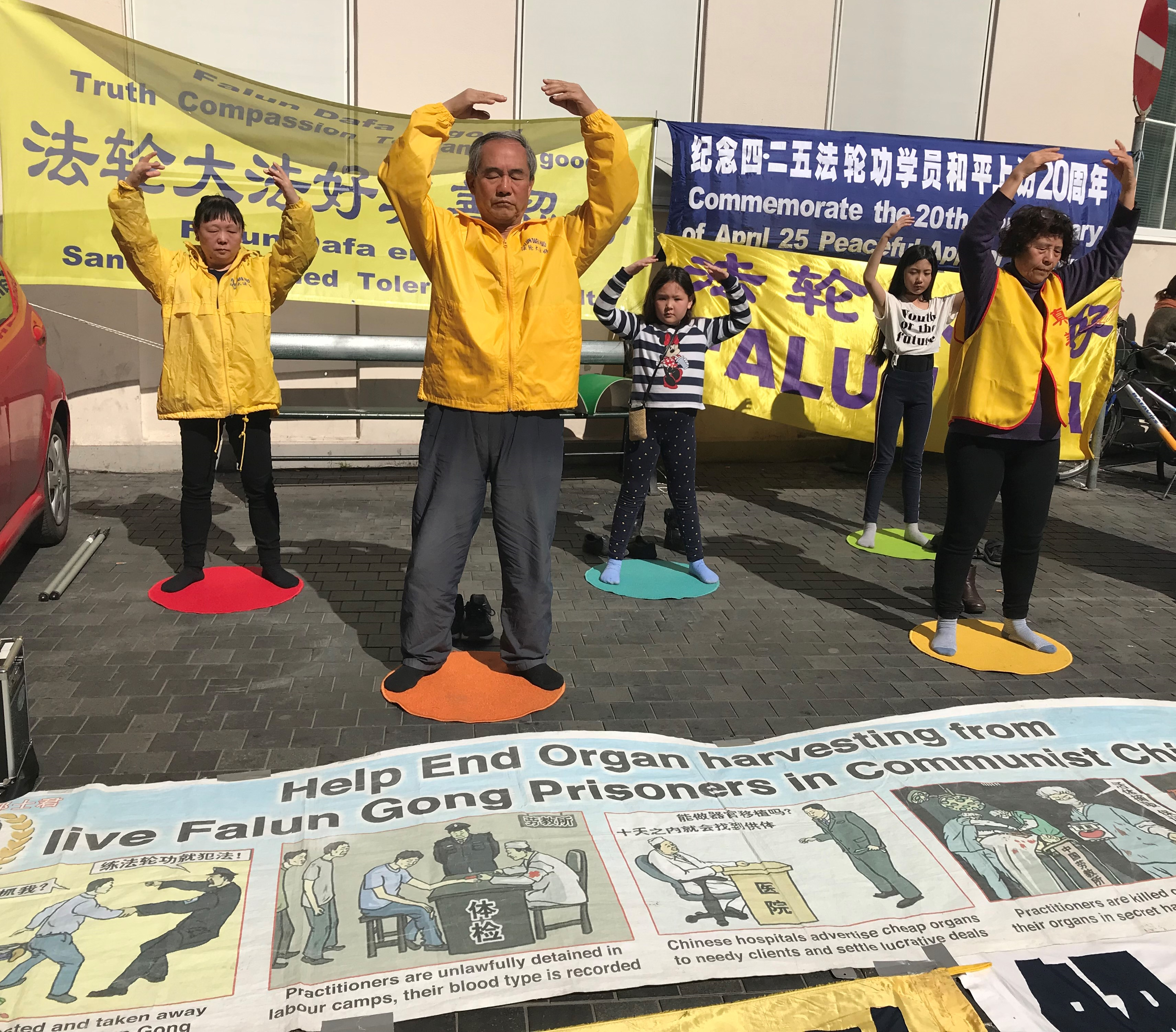 一对穿着入时的中年夫妇,仔细聆听学员向他们讲述发生在二十年前的万名法轮功学员自发来到北京信访办和平请愿的故事,心中非常感动。那位女士说:“我一走近你们,就有一种不同的感觉。本来我的腰很痛,但是现在感到一种非常舒服的暖暖的感觉。这太神奇了!可以肯定,法轮功是一种非常好的功法。回家后我一定会上网查看更多信息,了解更多法轮功的情况,也许会来尝试炼法轮功。”