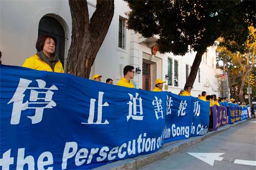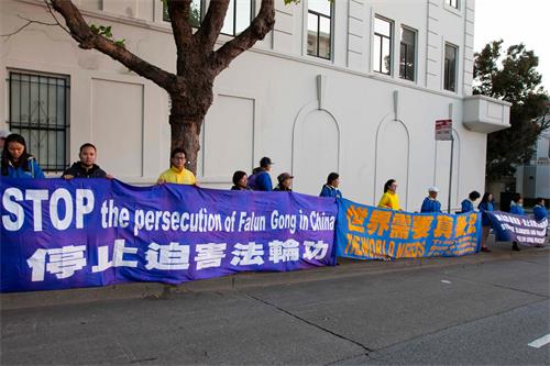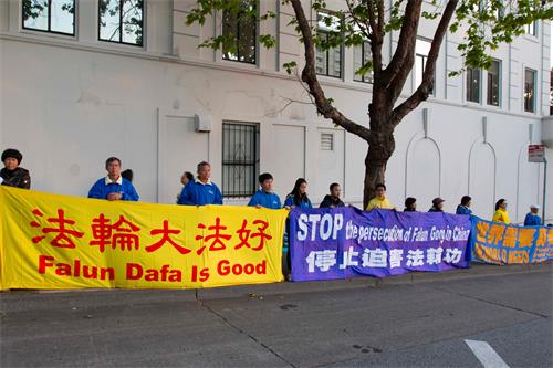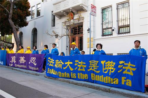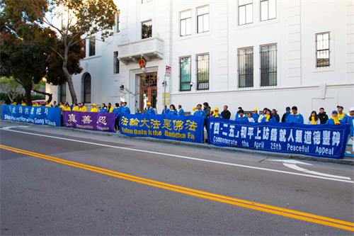 <英文版: http://en.minghui.org/html/articles/2019/4/28/176651.html>旧金山学员中领馆前纪念四·二五(图)