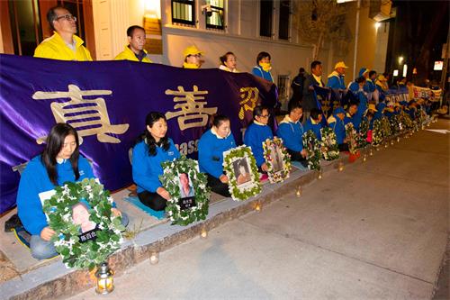 【明慧网二零一九年四月二十六日】(明慧记者王英旧金山报导)二零一九年四月二十四日晚,旧金山湾区数百名法轮功学员来到中领馆前,举行烛光守夜,悼念被中共残酷迫害致死的法轮功学员,同时要求中共立即停止迫害。