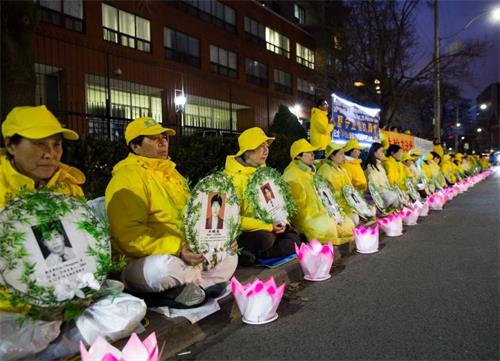 ![]() 图1~8:纪念“四·二五”二十周年,多伦多法轮功学员四月二十五日晚八点至十点在中领馆前会举行烛光悼念活动。 |