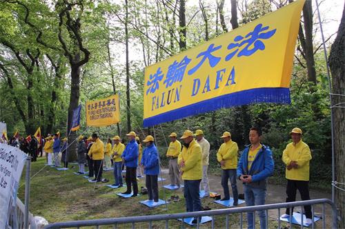 ![]() 图1~3:法轮功学员来到海牙的中共驻荷兰大使馆举行和平抗议活动,纪念“四·二五”上万名法轮功学员北京中南海和平上访二十周年 |