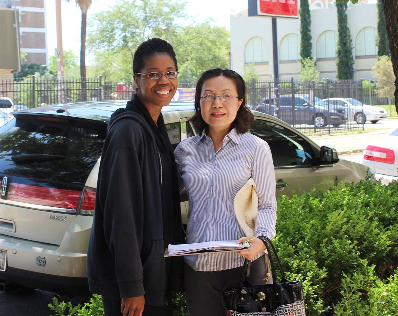 图2:耶内达(Yeretta ,左)明白真相后,希望帮助法轮功反迫害