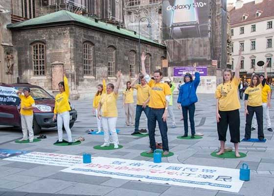 奥地利法轮功学员纪念四·二五和平上访(图)
