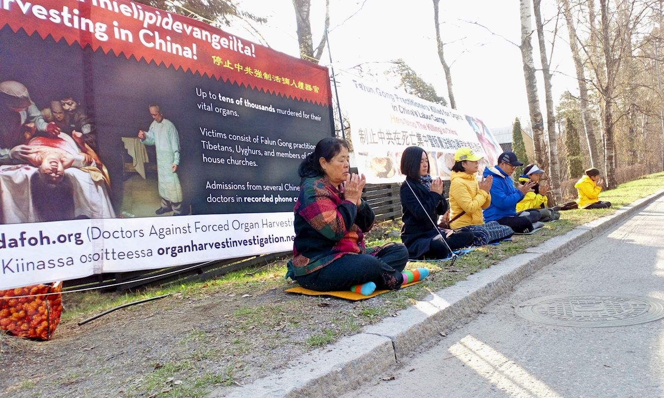 ![]() 图1:纪念“四·二五”和平上访二十周年,四月二十四日上午,芬兰部份法轮功学员在赫尔辛基大使馆门前静坐,呼吁制止迫害。 |
