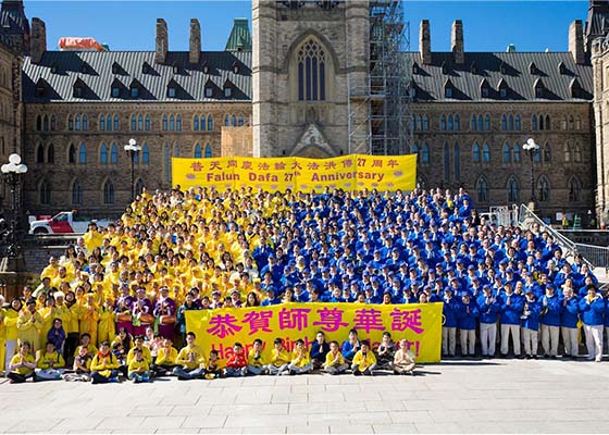 世界法轮大法日前夕,二零一九年五月八日,加拿大东部法轮功学员汇聚在首都渥太华国会山前,庆祝法轮大法弘传二十七周年。