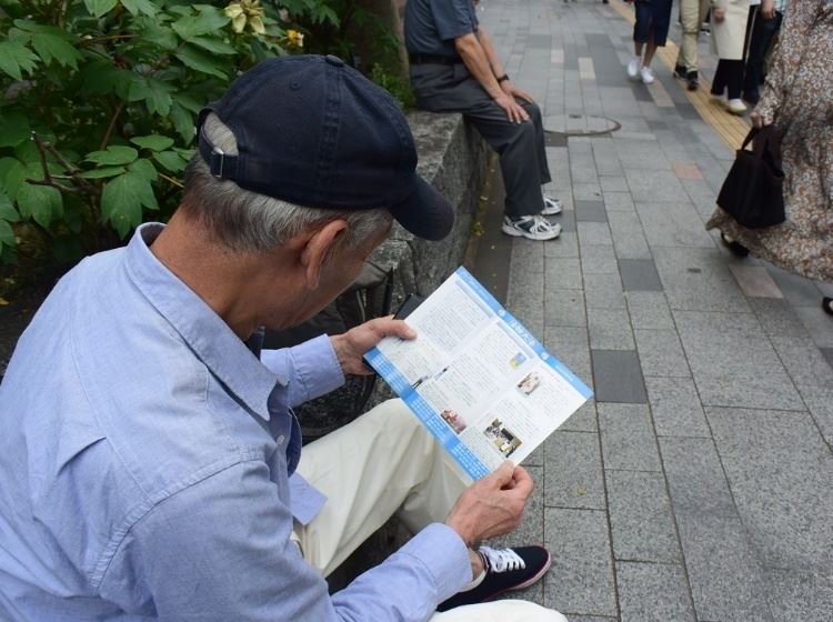 当学员将法轮功在中国无辜被迫害的真相告诉了在银座工作的佐藤时,他惊奇地说,“被迫害?还有被活体摘取器官的!看游行真让人高兴,可是从来不知道有这样(残酷)的事情发生。”说着他开始阅读真相资料。