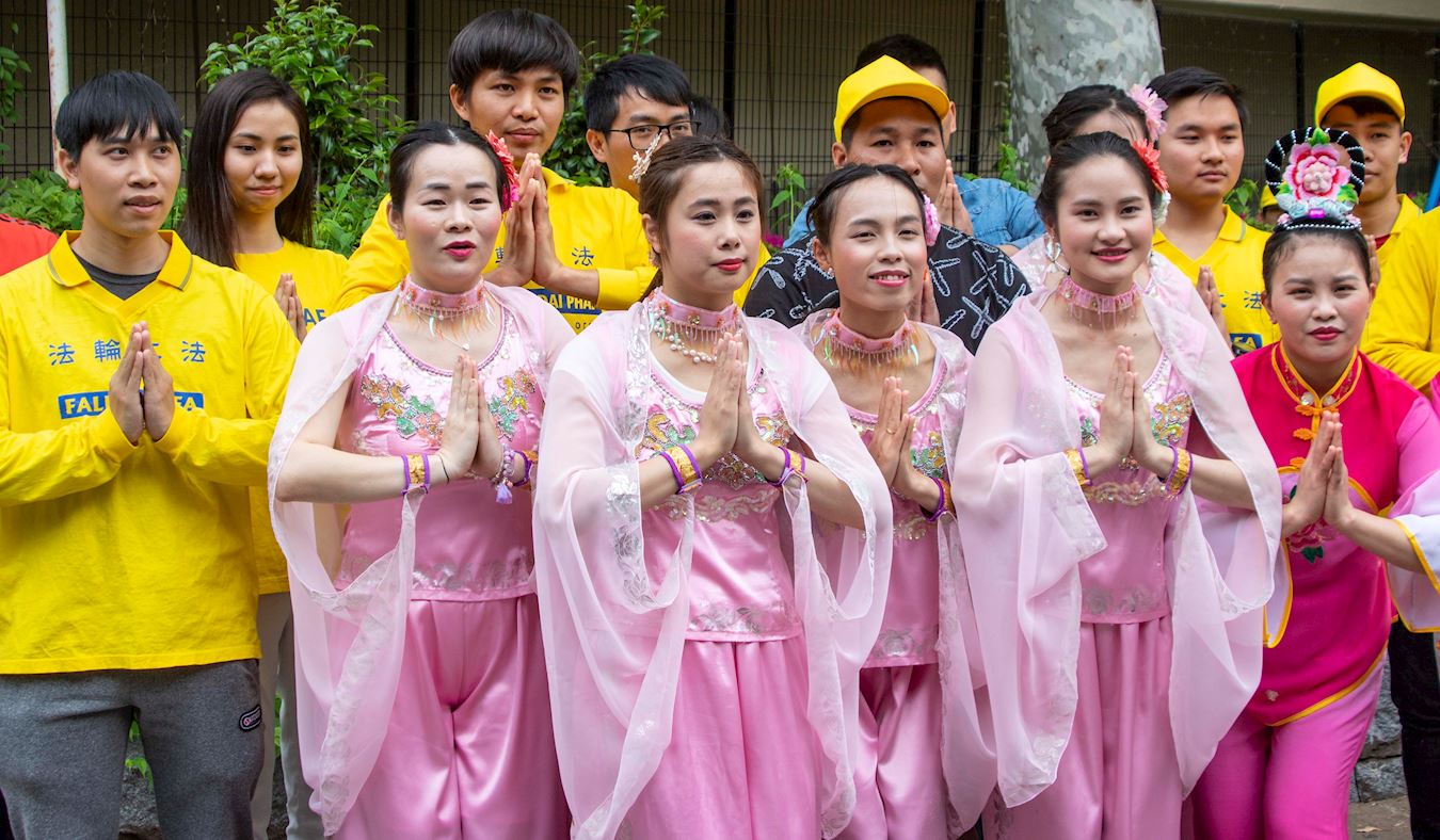 仙女队的仙姿感谢师父说,“小时候我身体不好,感谢法轮大法给了我健康。妈妈在我出生之前就是大法弟子,所以我从小就开始修炼。当我遇到麻烦或者痛苦的时候,比如在学校和朋友发生矛盾时,大法在法理教我怎样对待别人。多亏大法的理念,向好的方向引导我,我才能活泼地、健康地活到今天。”