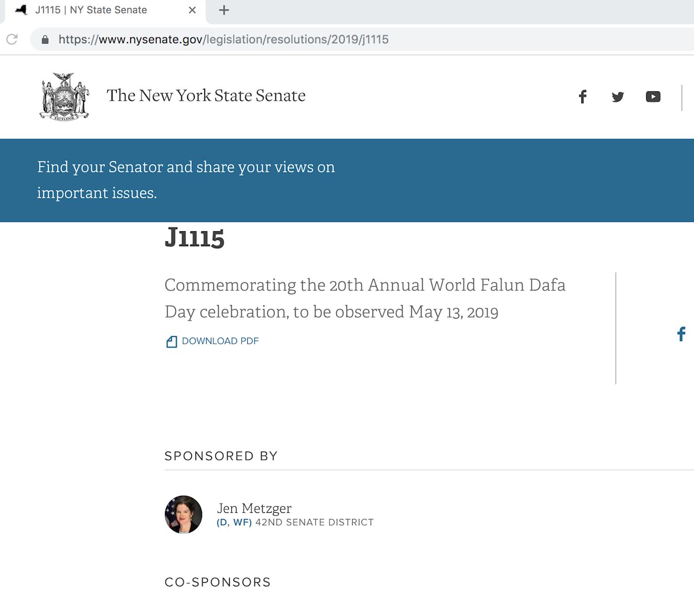 图1:纽约州参议院J1115决议案网站截图