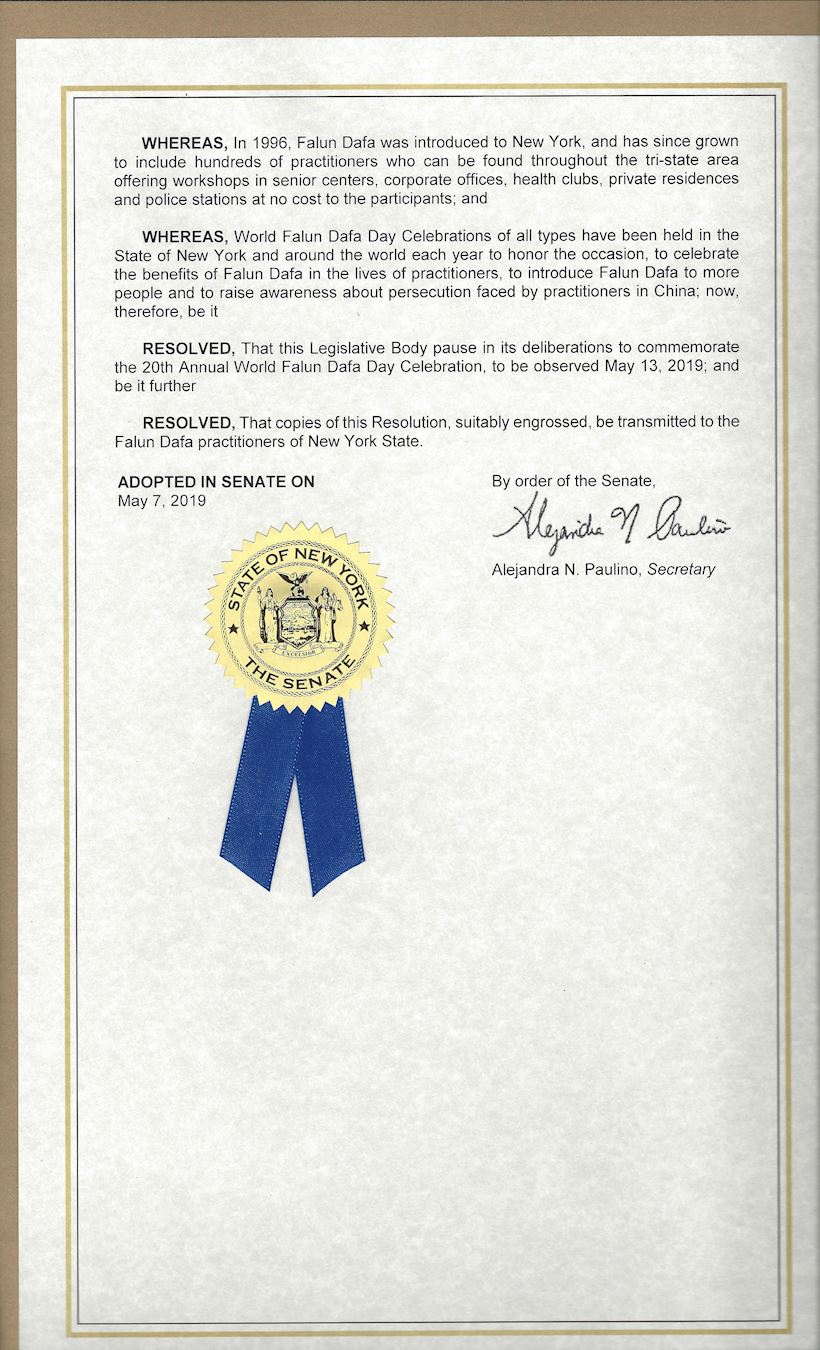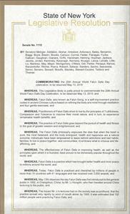 纽约州参议院恭贺第二十届世界法轮大法日(图)