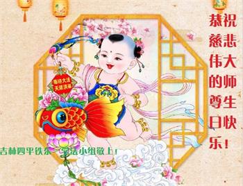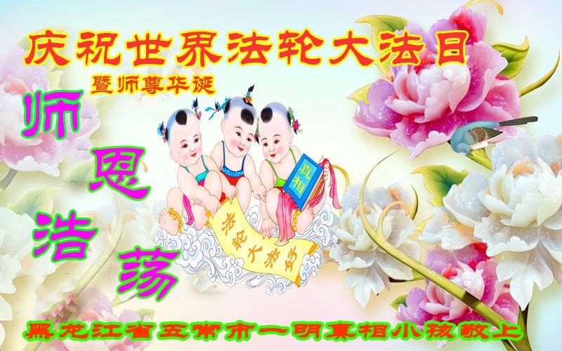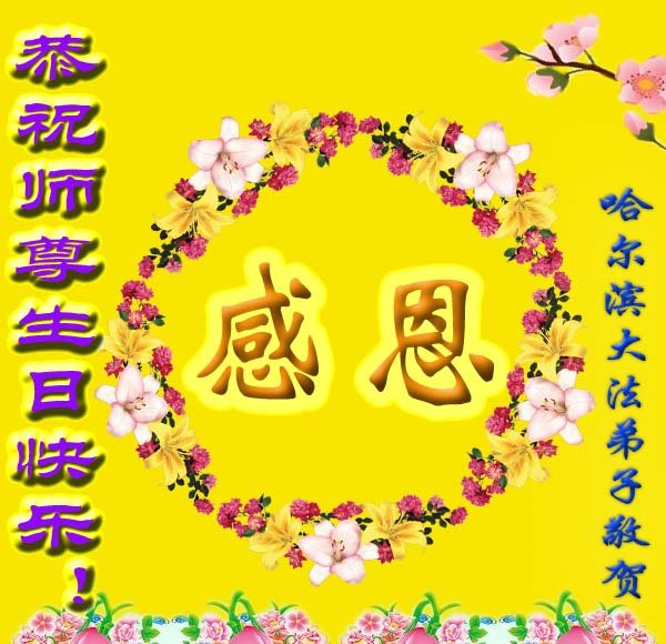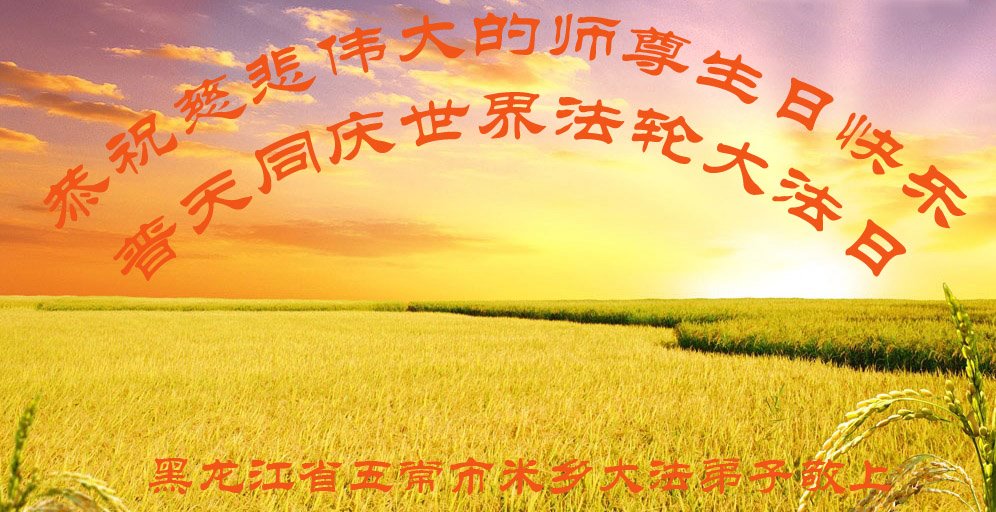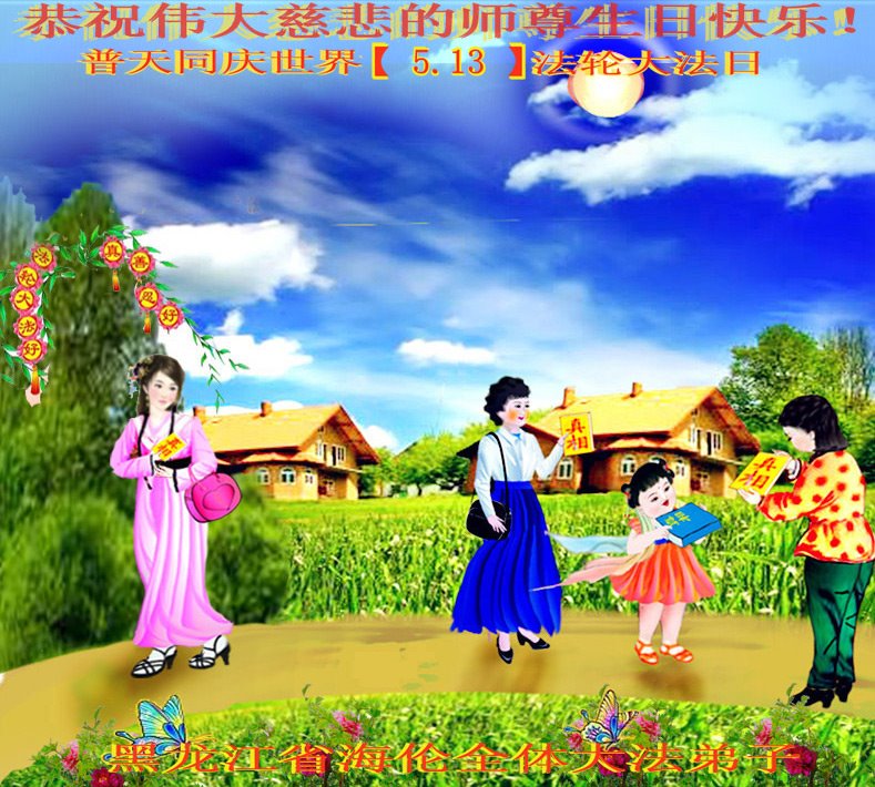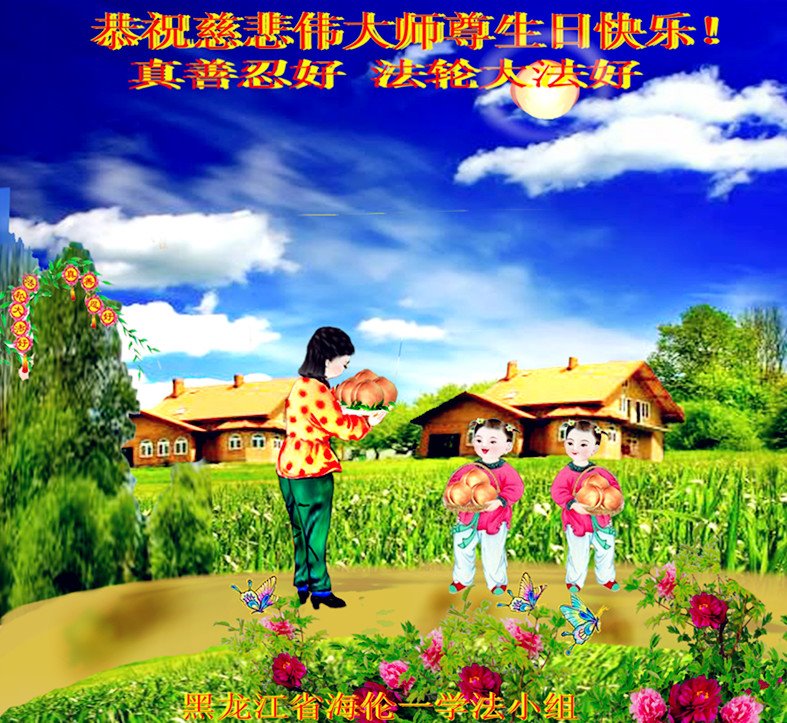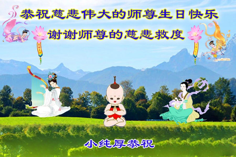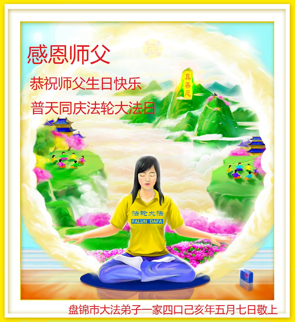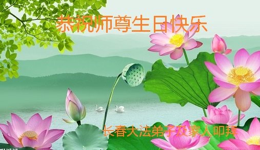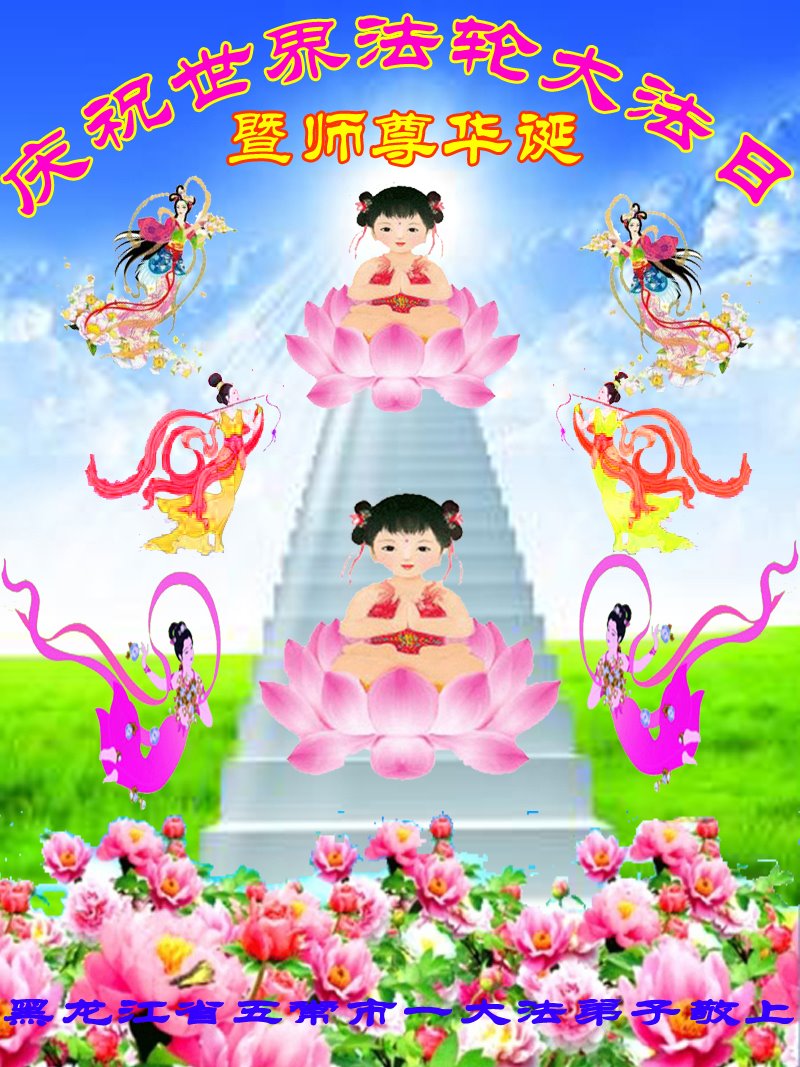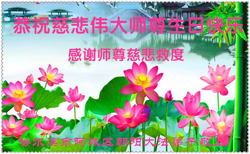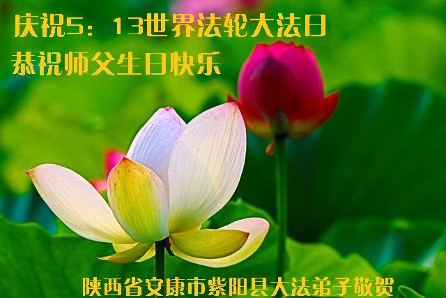 “五·一三”世界法轮大法日暨慈悲伟大师父的华诞到了!我们一家同修三人及我们现在的学法小组全体弟子在此衷心恭祝慈悲伟大的师父生日快乐!发自内心的感恩慈悲无量的伟大的师父!是您的慈悲救度,弟子们才有了今天。