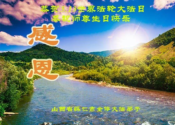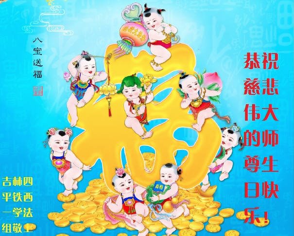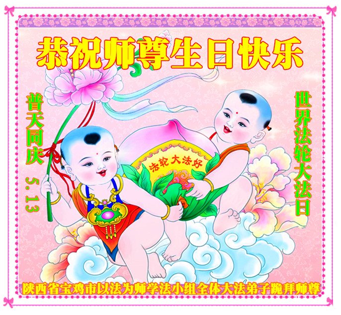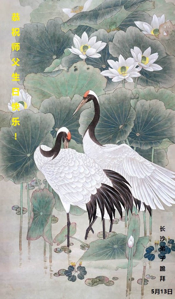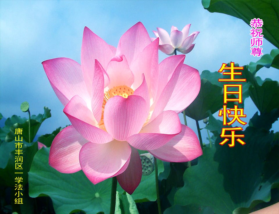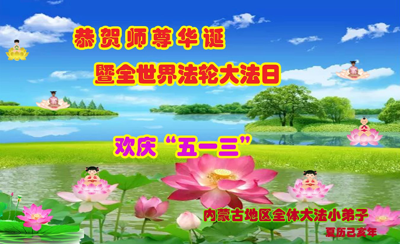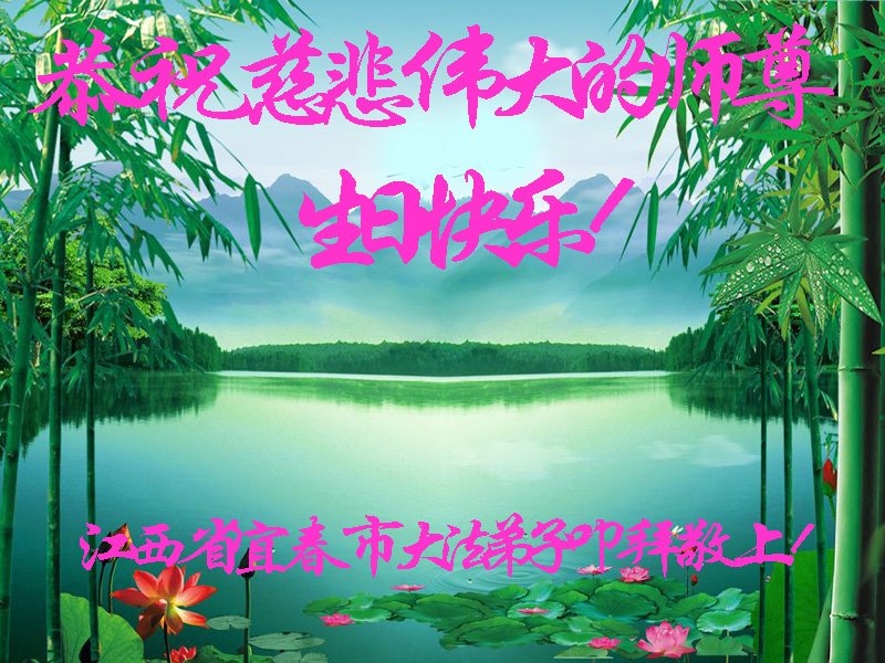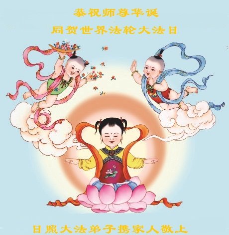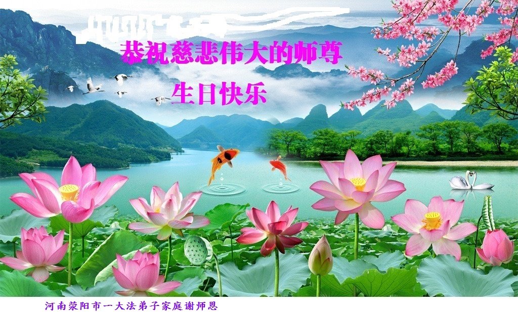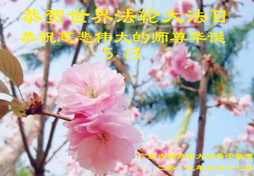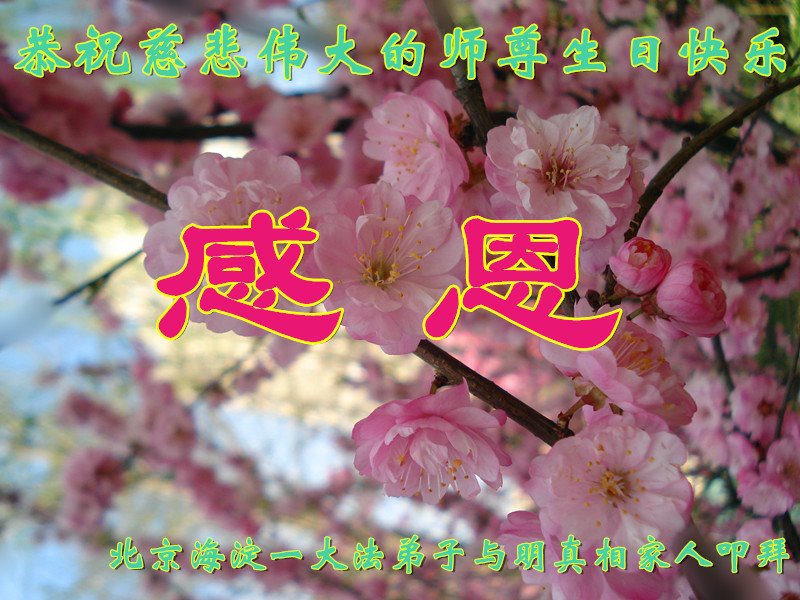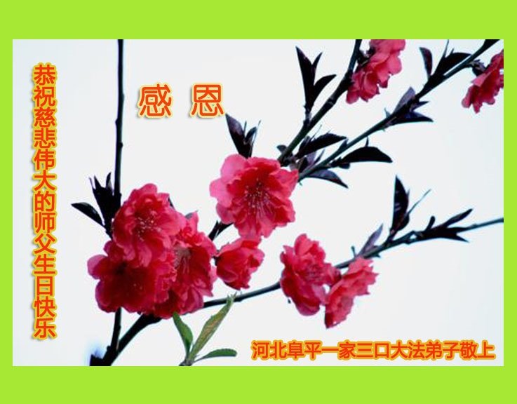“五·一三”世界法轮大法日暨慈悲伟大师父的华诞到了!我们一家同修三人及我们现在的学法小组全体弟子在此衷心恭祝慈悲伟大的师父生日快乐!发自内心的感恩慈悲无量的伟大的师父!是您的慈悲救度,弟子们才有了今天。
