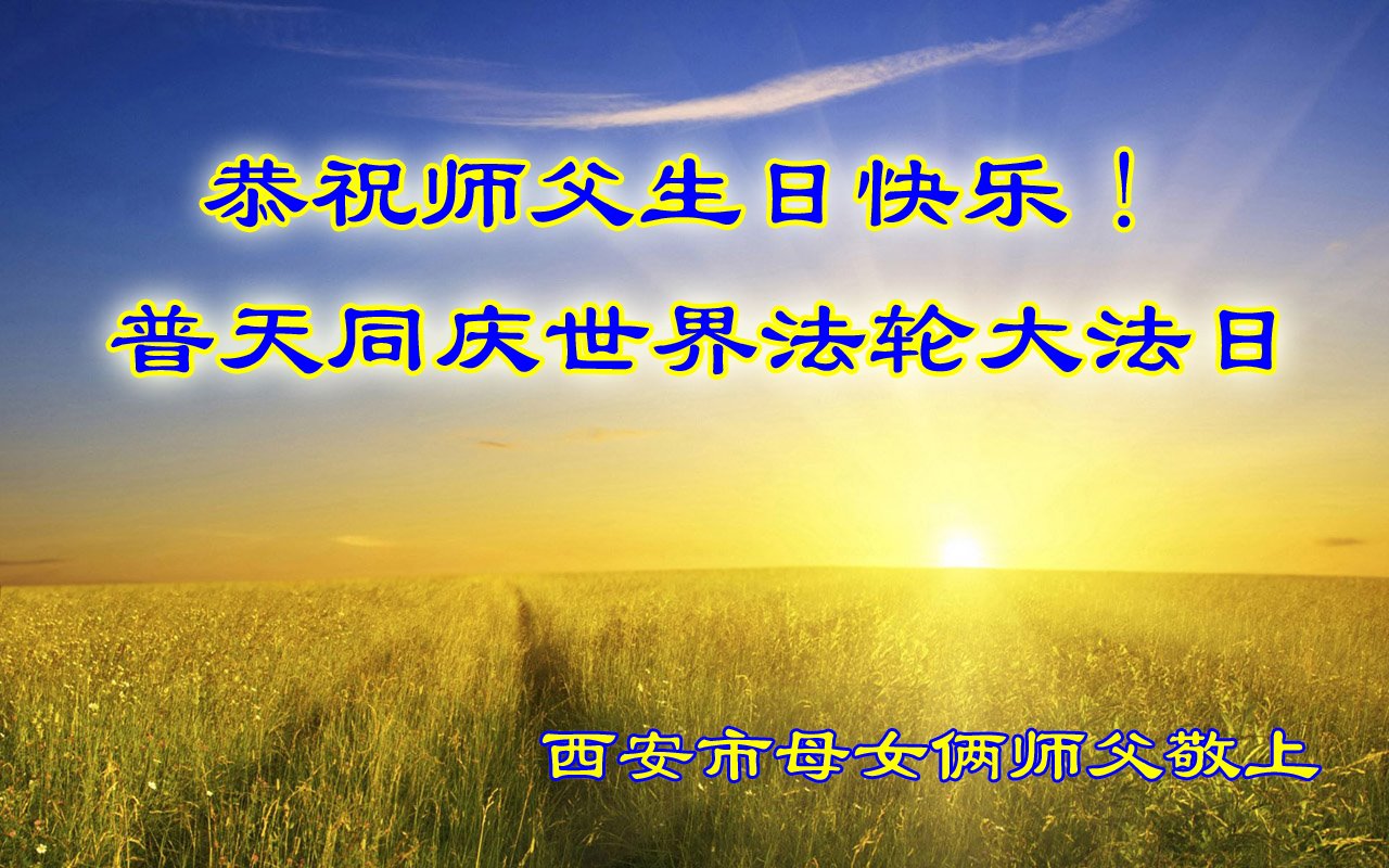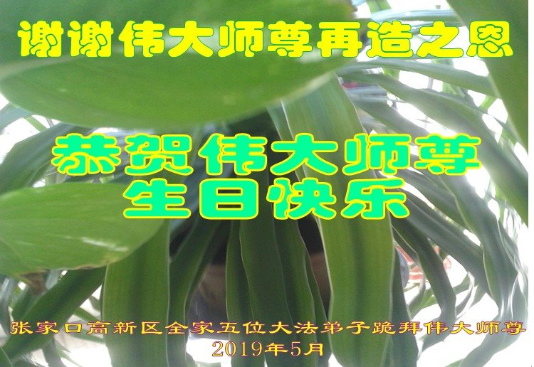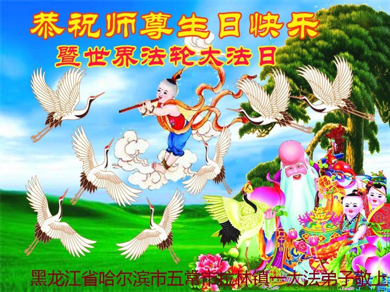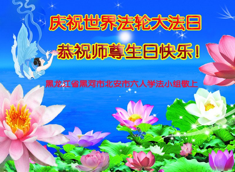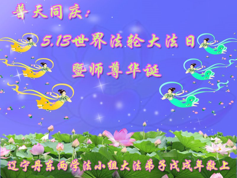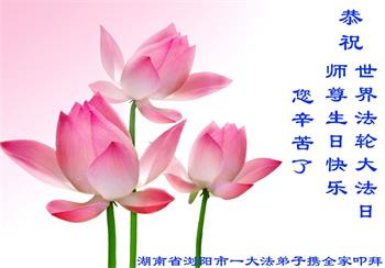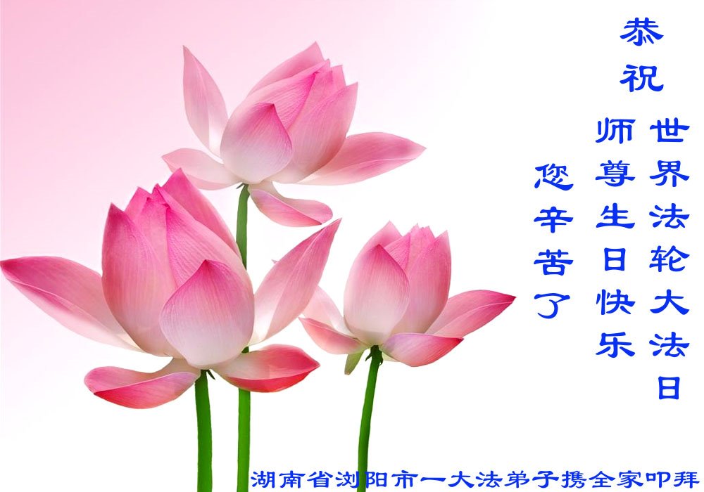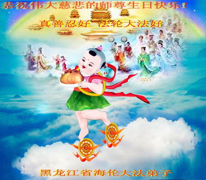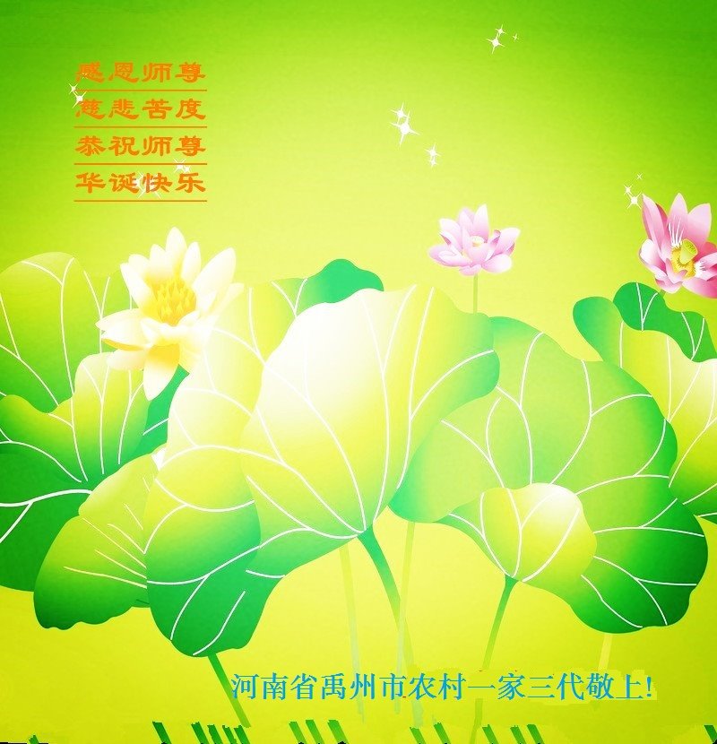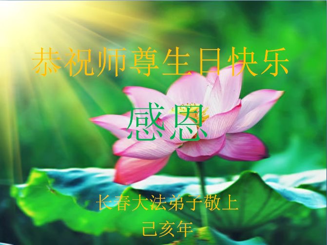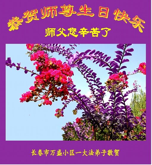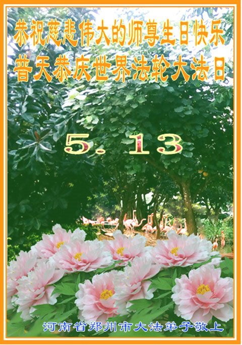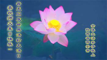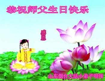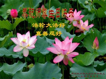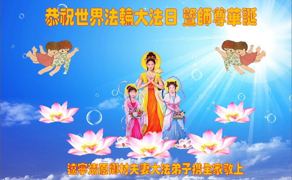 “五·一三”世界法轮大法日暨慈悲伟大师父的华诞到了!我们一家同修三人及我们现在的学法小组全体弟子在此衷心恭祝慈悲伟大的师父生日快乐!发自内心的感恩慈悲无量的伟大的师父!是您的慈悲救度,弟子们才有了今天。