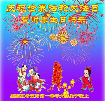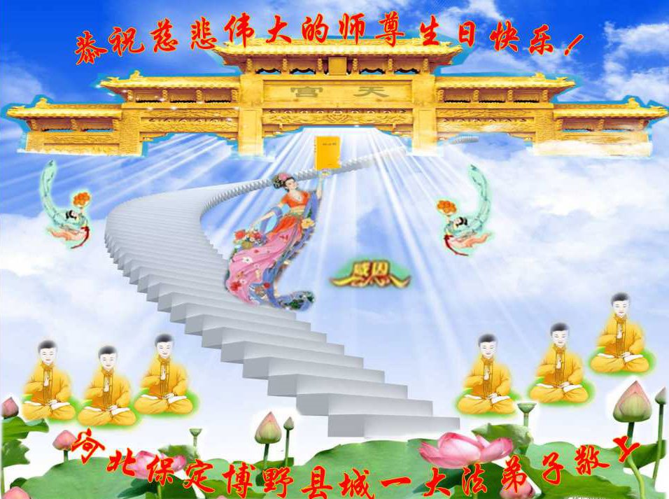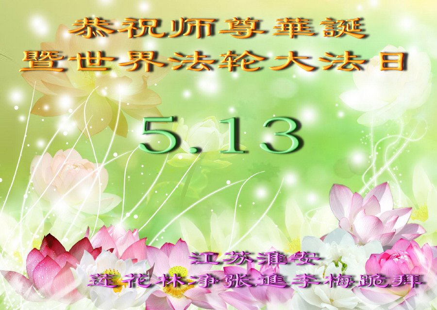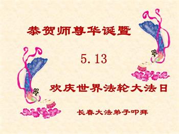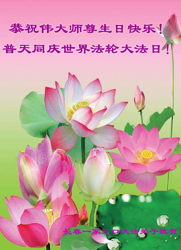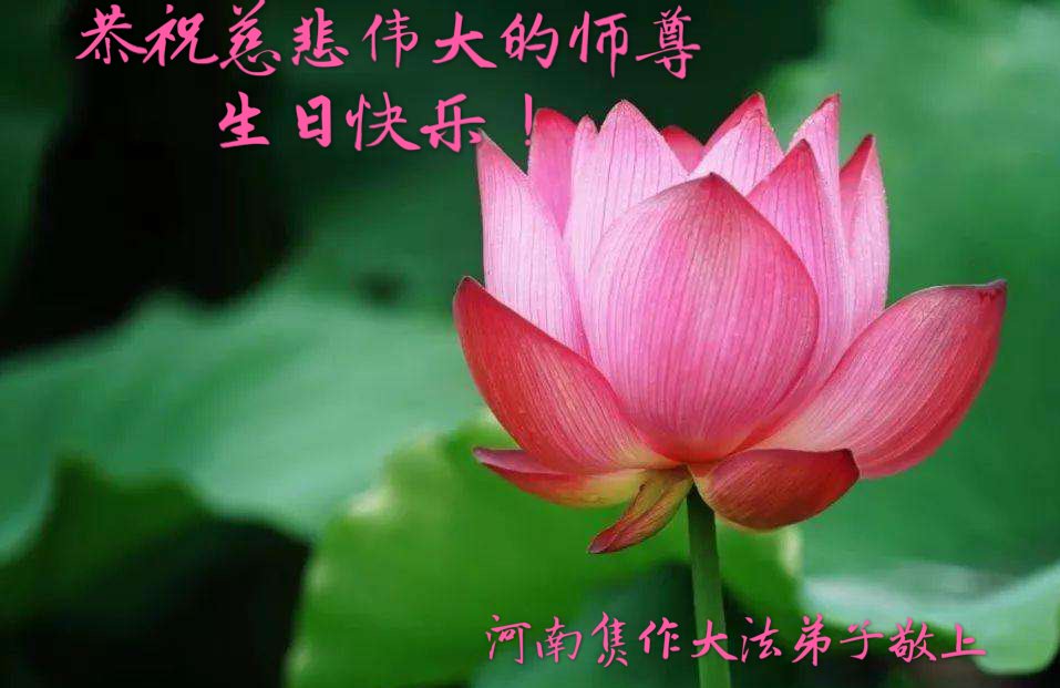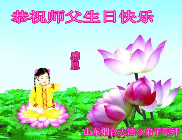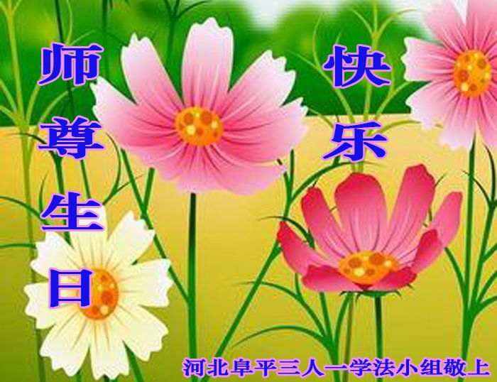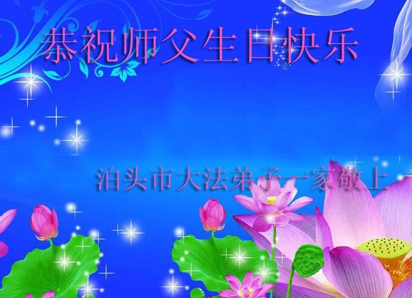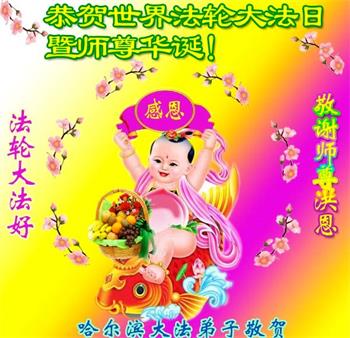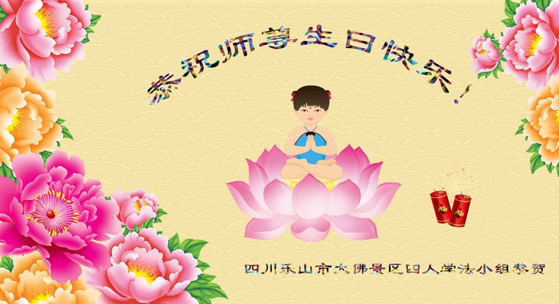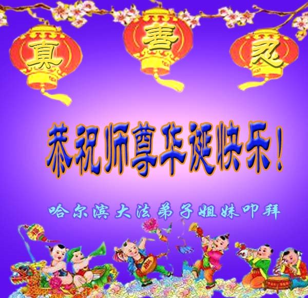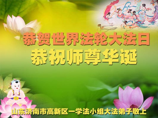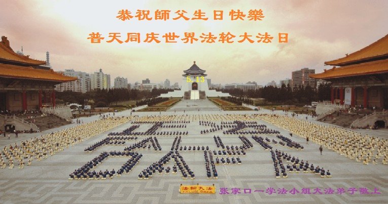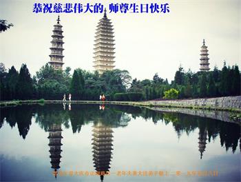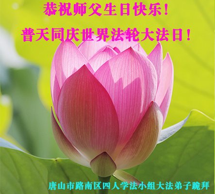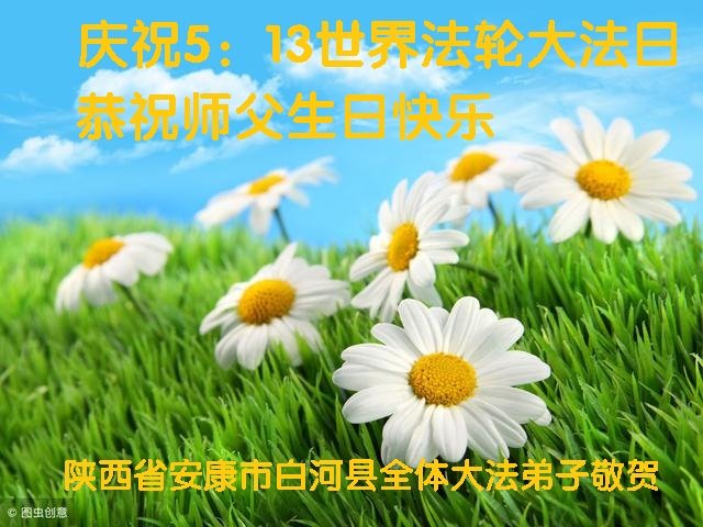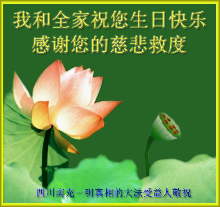 “五·一三”世界法轮大法日暨慈悲伟大师父的华诞到了!我们一家同修三人及我们现在的学法小组全体弟子在此衷心恭祝慈悲伟大的师父生日快乐!发自内心的感恩慈悲无量的伟大的师父!是您的慈悲救度,弟子们才有了今天。