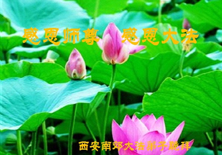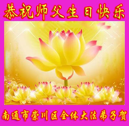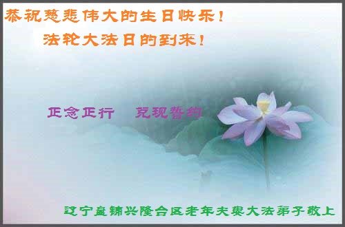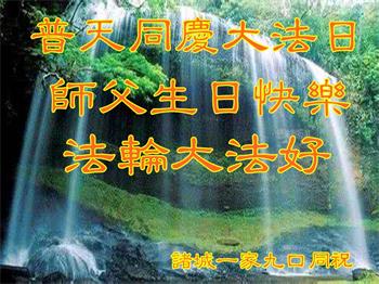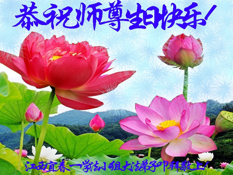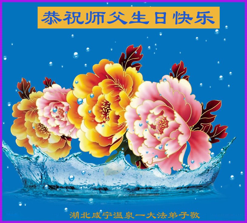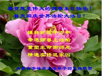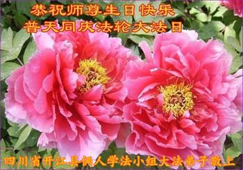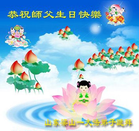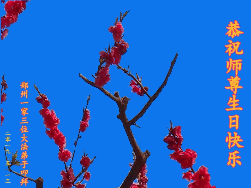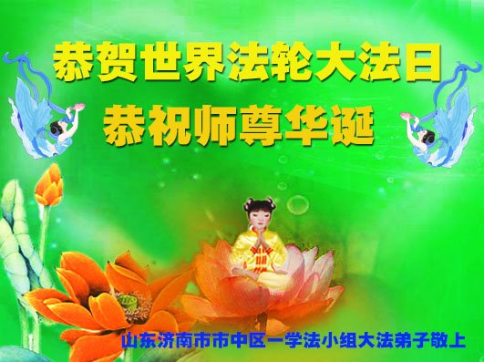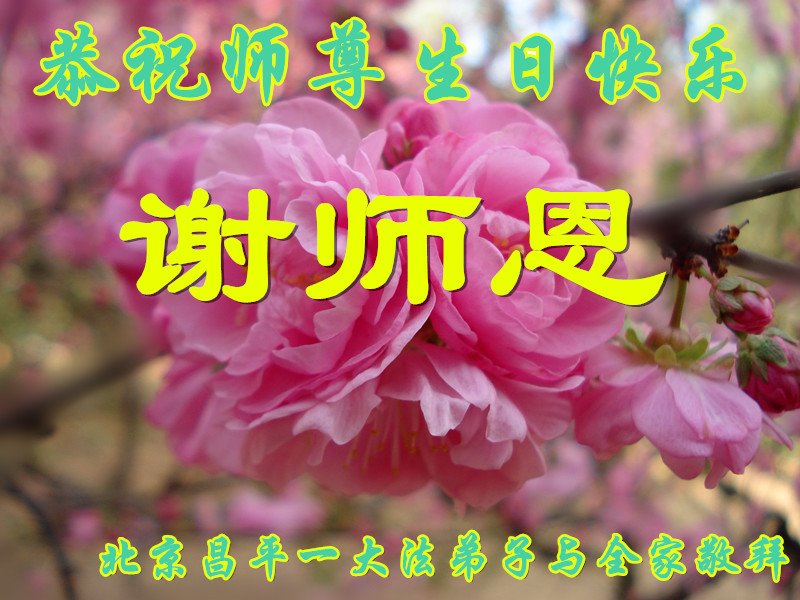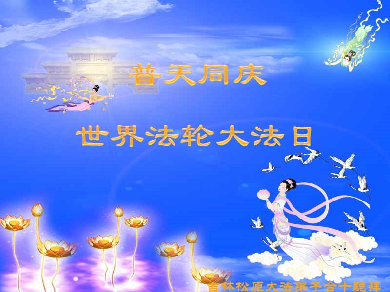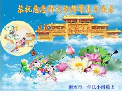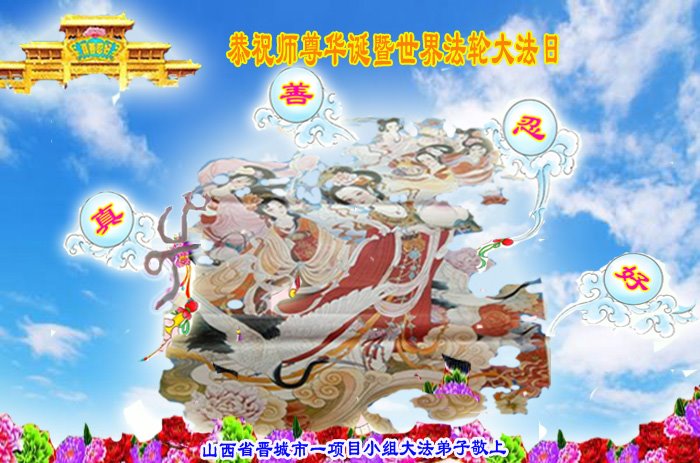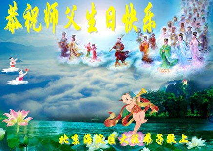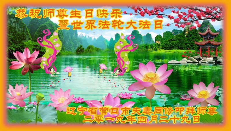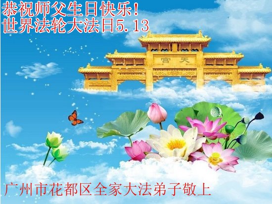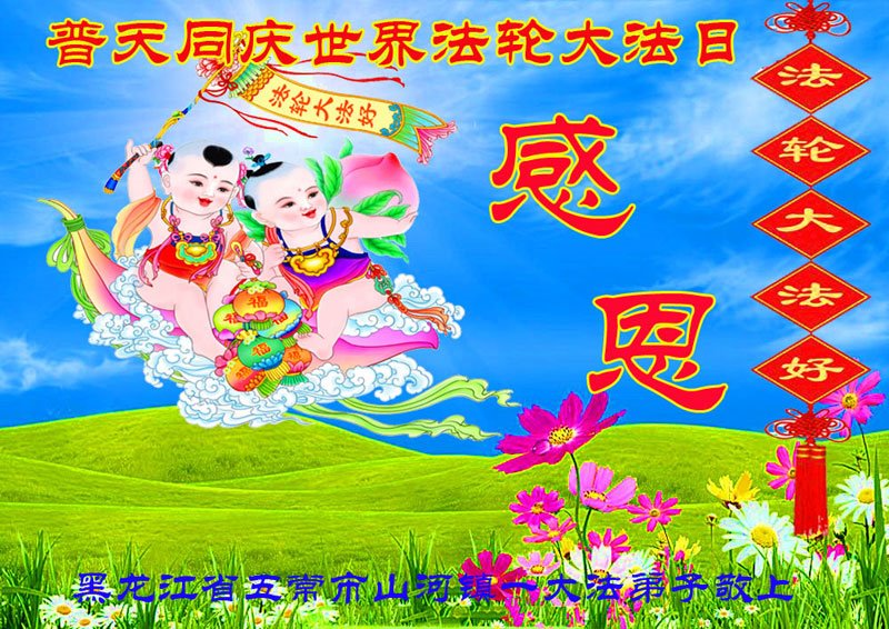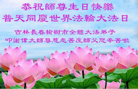 “五·一三”世界法轮大法日暨慈悲伟大师父的华诞到了!我们一家同修三人及我们现在的学法小组全体弟子在此衷心恭祝慈悲伟大的师父生日快乐!发自内心的感恩慈悲无量的伟大的师父!是您的慈悲救度,弟子们才有了今天。