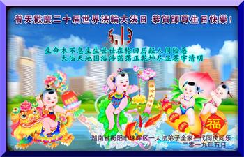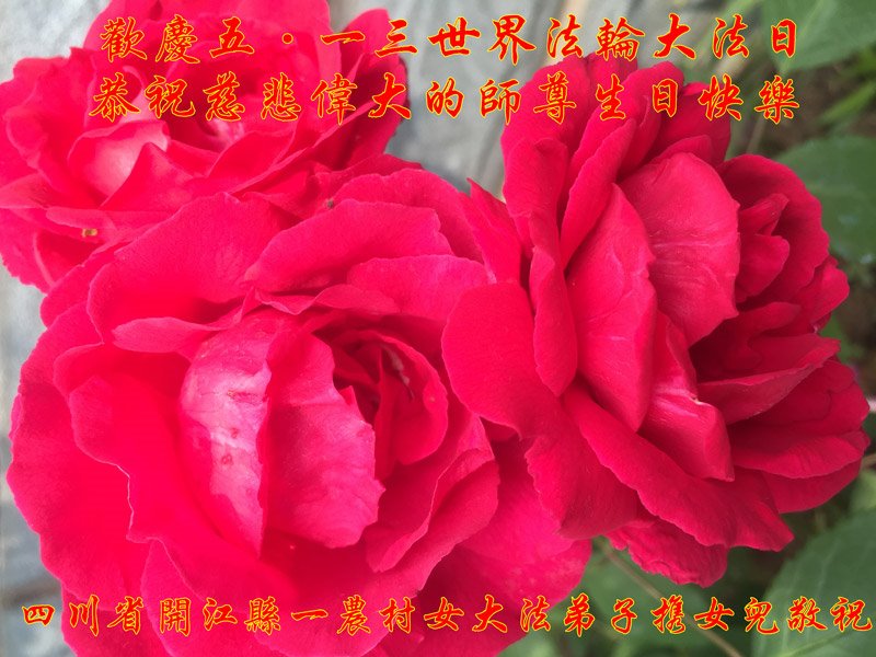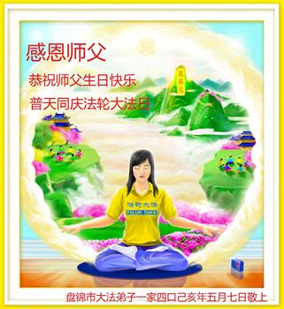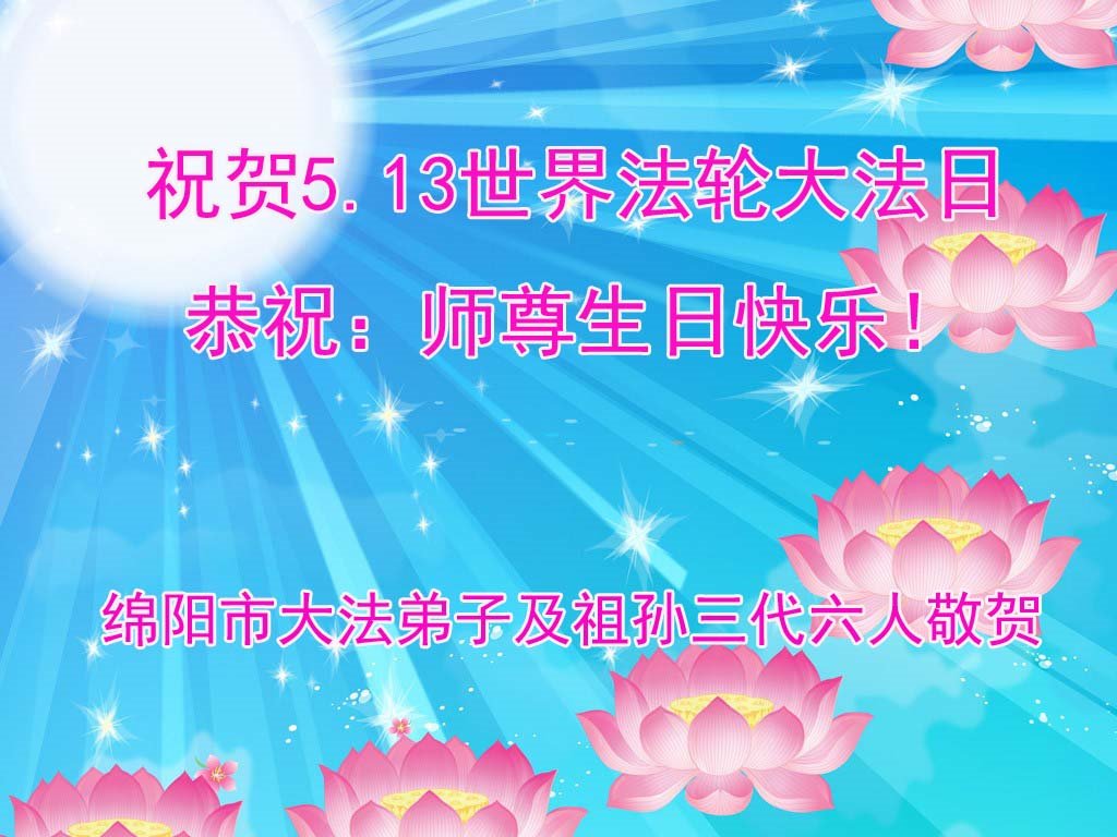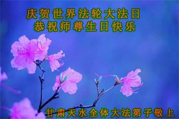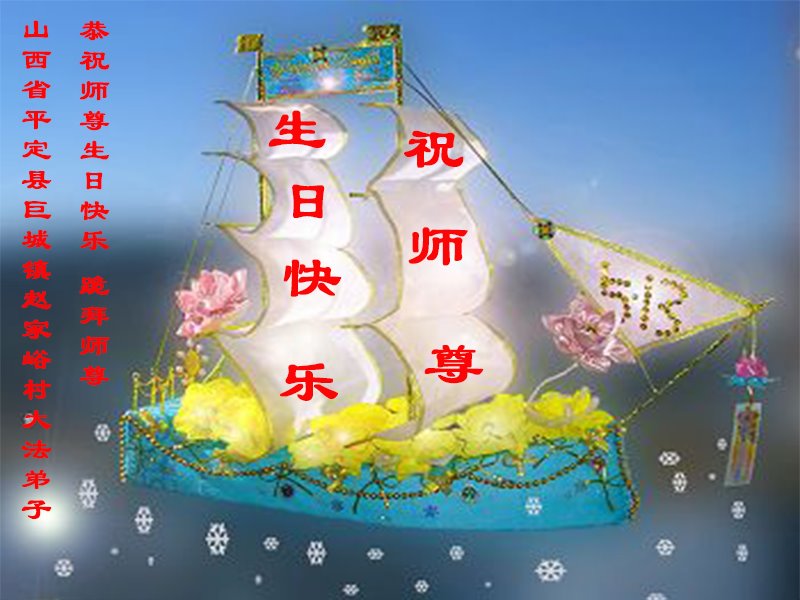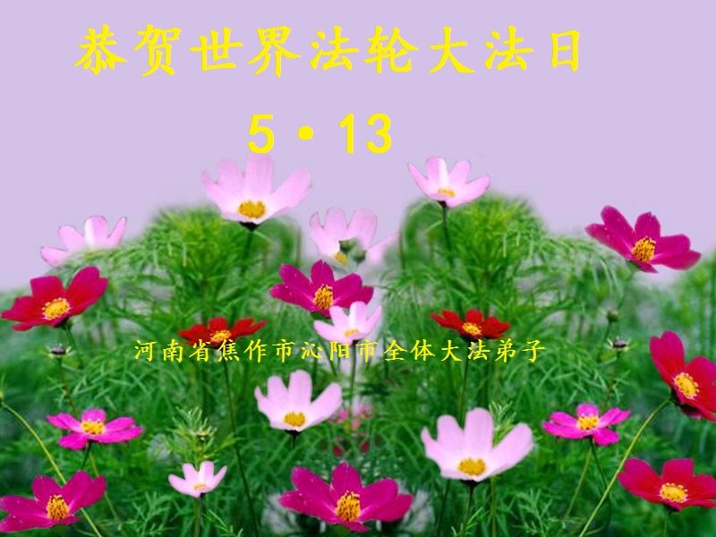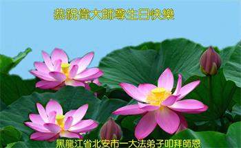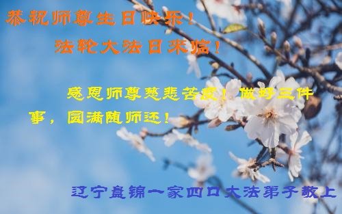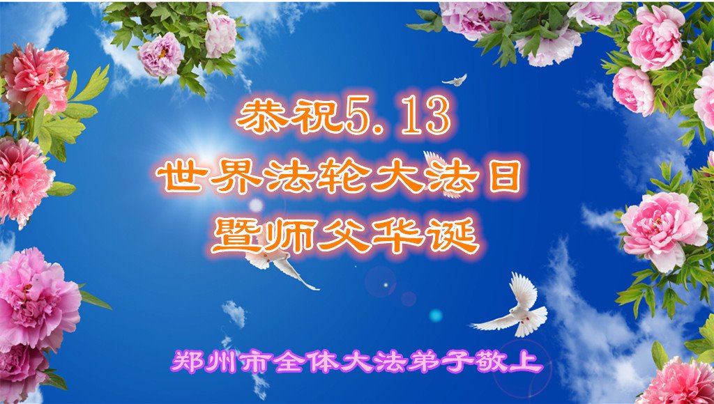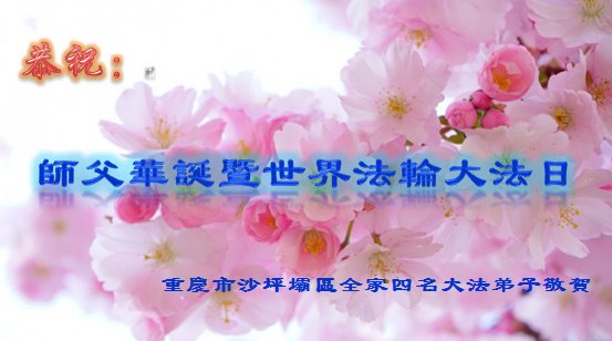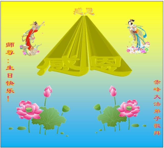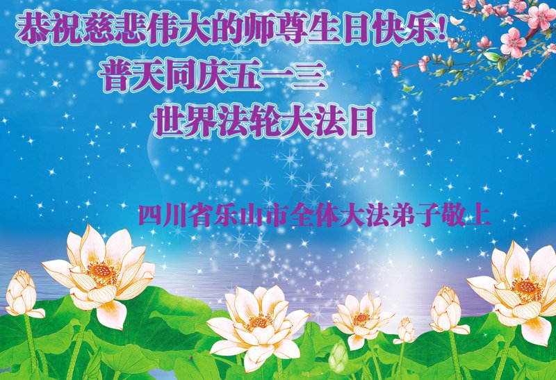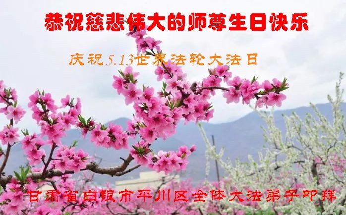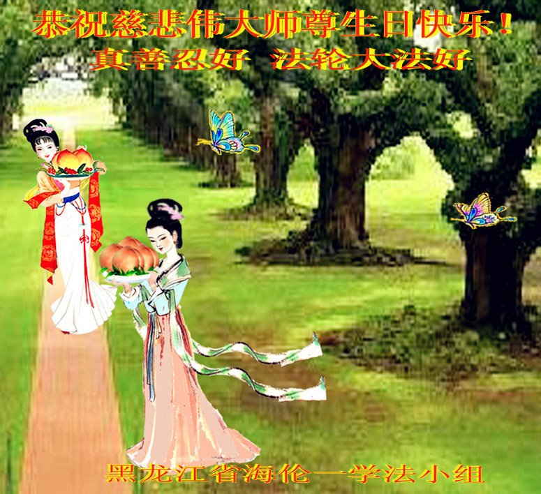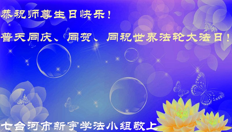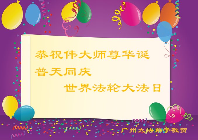 “五·一三”世界法轮大法日暨慈悲伟大师父的华诞到了!我们一家同修三人及我们现在的学法小组全体弟子在此衷心恭祝慈悲伟大的师父生日快乐!发自内心的感恩慈悲无量的伟大的师父!是您的慈悲救度,弟子们才有了今天。